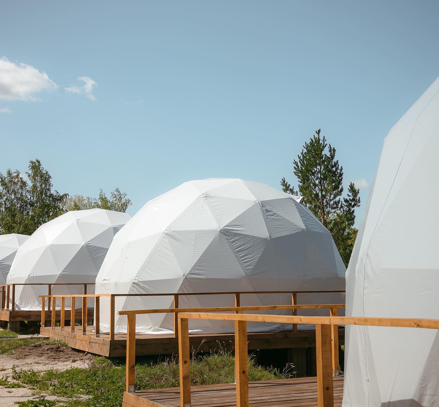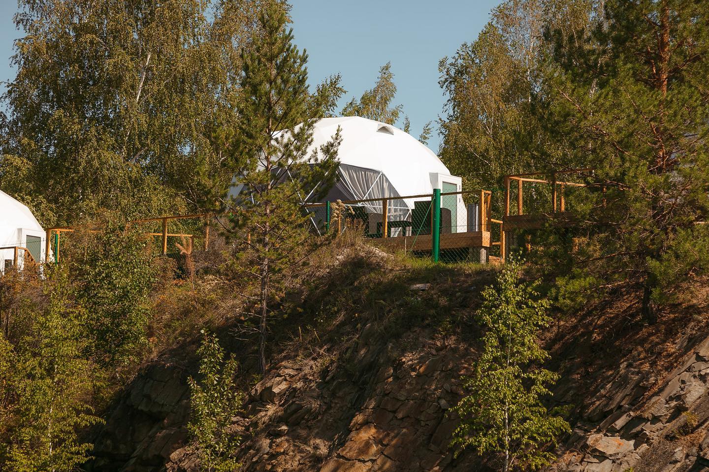 Вне глэмпинга: своя беседка, выдают мангалы, шампура и казаны.