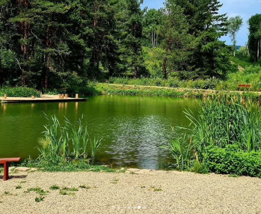 Красивая местность для прогулок в свободное от процедур время. Здесь устраивают вечерние посиделки у костра для гостей. Есть своё форелевое озеро - можно порыбачить, а также лошади - можно совершать сеансы ипотерапии. Есть русская баня вместимостью до 8 человек - с каминным залом, целебным паром, горячими камнями.