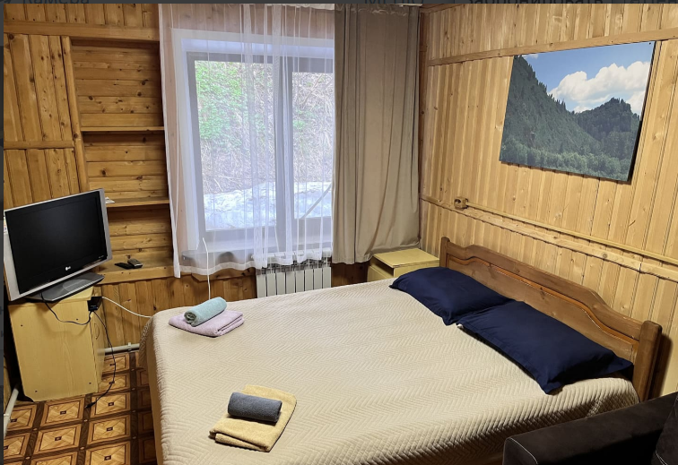 Проживание в комфортабельных альпийских домиках с уютными номерами и живописными видами за окном. В кафе вкусное и сытное питание: свежая выпечка, первые и вторые горячие блюда, шашлык, салаты и гарниры, блюда национальной кухни из мяса халяль. Есть бар.